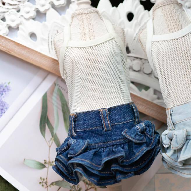 TaniWina デニム ティアードスカート リボンデザイン